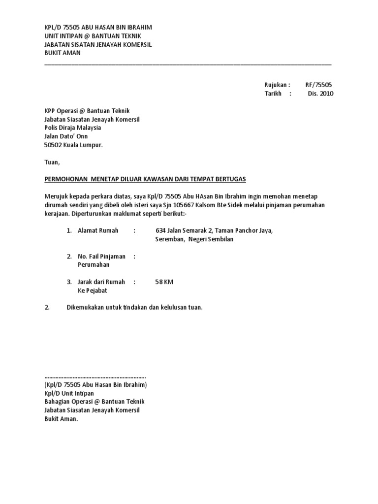 Contoh Surat Pertukaran Tempat Kerja In English Letter 7saudara Com
